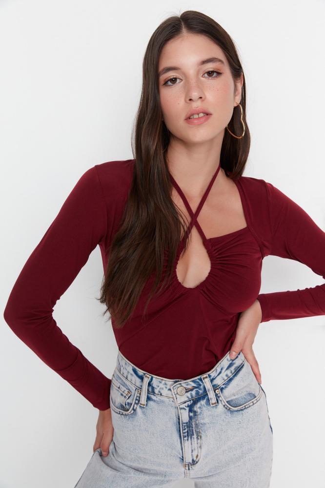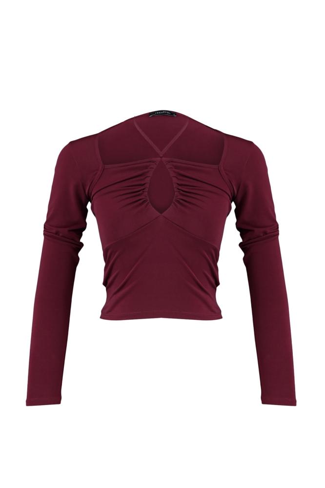 بلوزة محبوكة قابلة للتمدد باللون العنابي/الجسم TWOAW23BZ00093