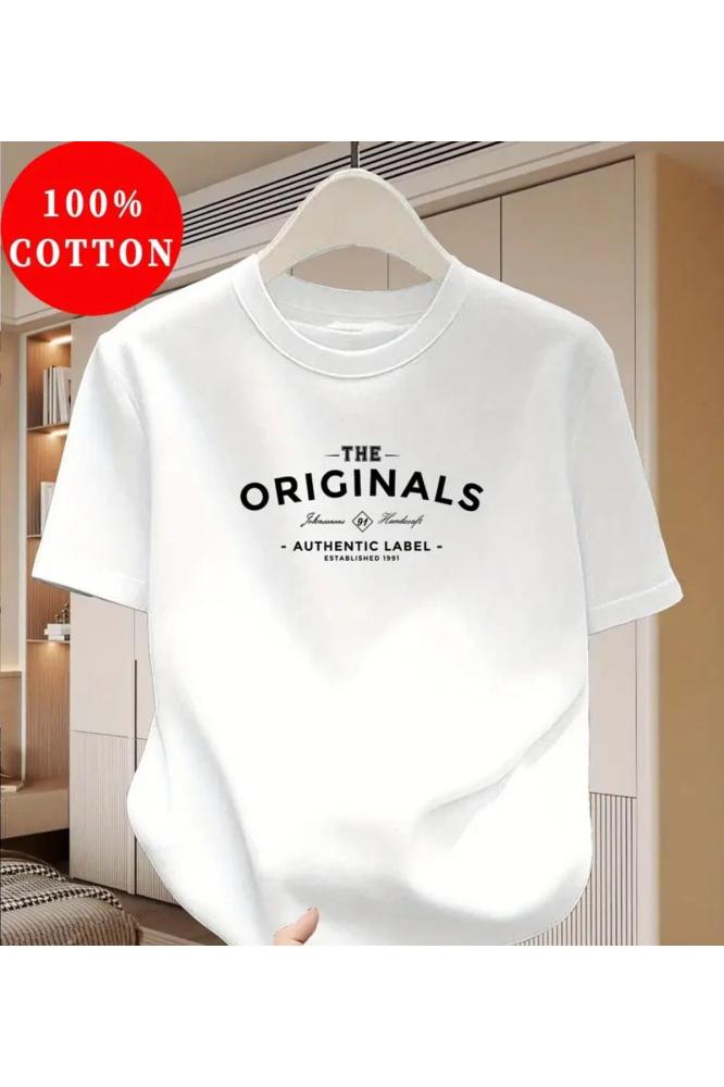 تي شيرت أبيض برقبة دائرية من القطن الممشط المطبوع من The Originals