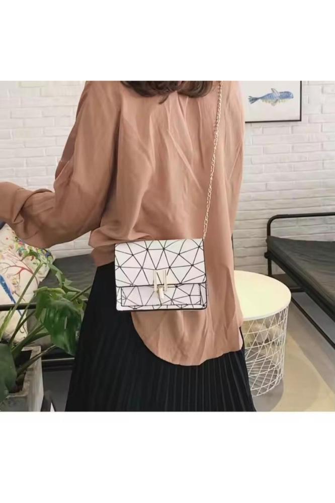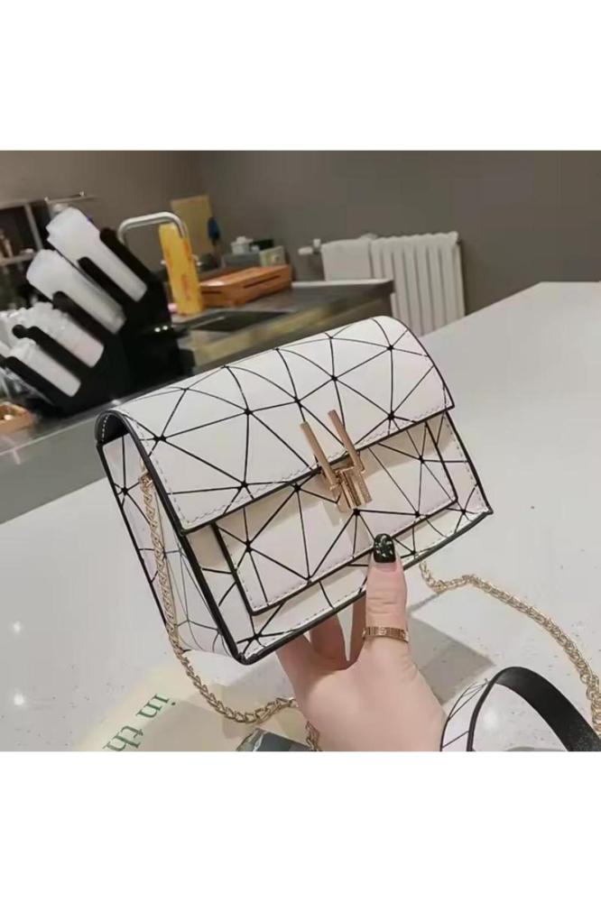 حقيبة كتف نسائية مطبوعة بنقشة متشققة مع حزام كتف سلسلة، حقيبة يد أنيقة للتسوق