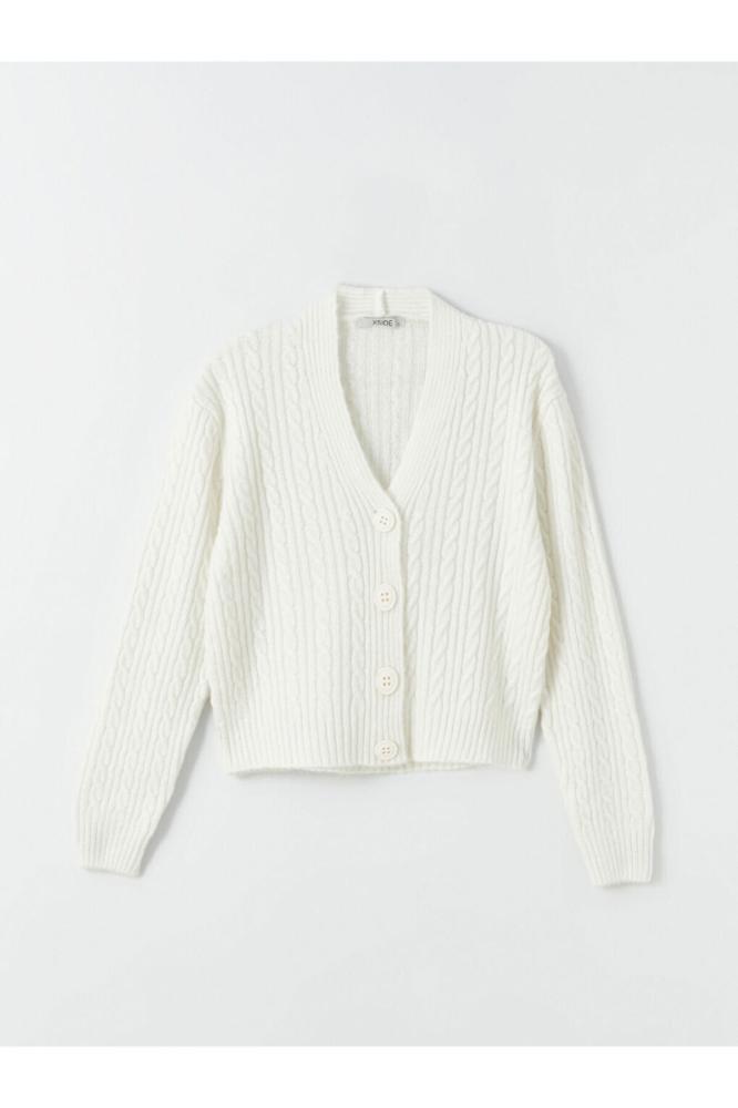 سترة نسائية محبوكة بأكمام طويلة ورقبة على شكل حرف V