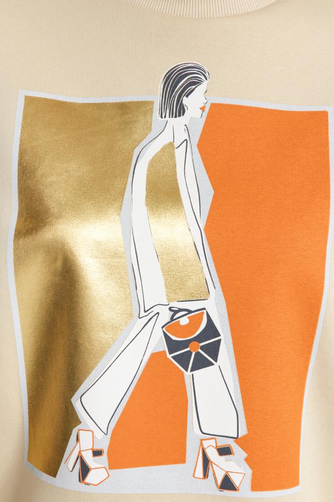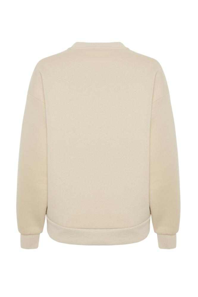 سويت شيرت محبوك كبير الحجم مطبوع عليه صوف سميك من الداخل ورقبة دائرية TWOAW24SW00132