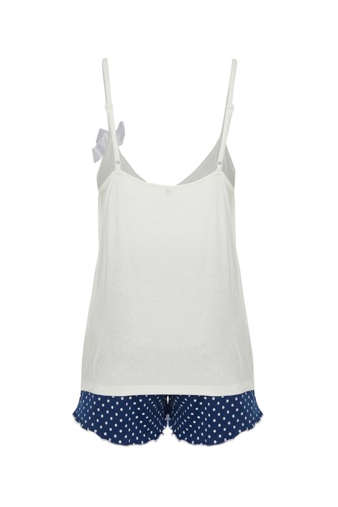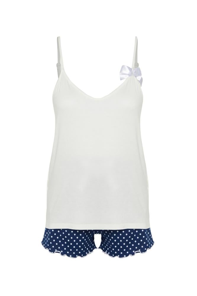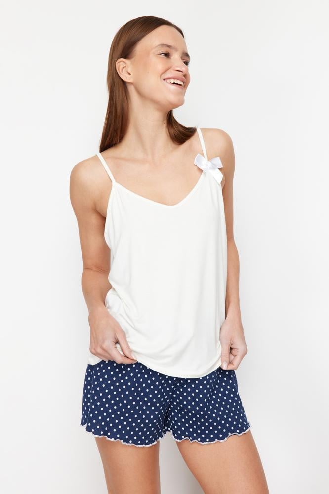 طقم بيجامة منسوج بشريط منقّط أبيض-أزرق داكن مع شورت THMSS24PT00320