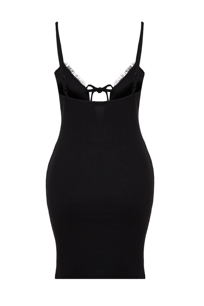 فستان نوم محبوك من القطن باللون الأسود مع تفاصيل ربط وتفاصيل حبل THMSS23GC00014