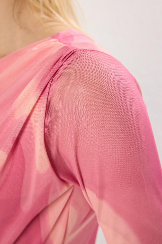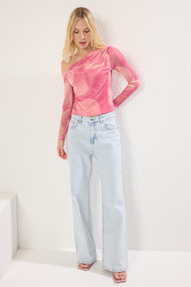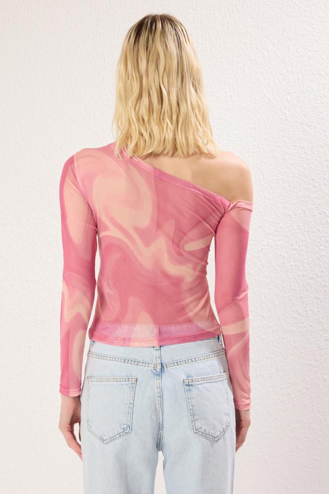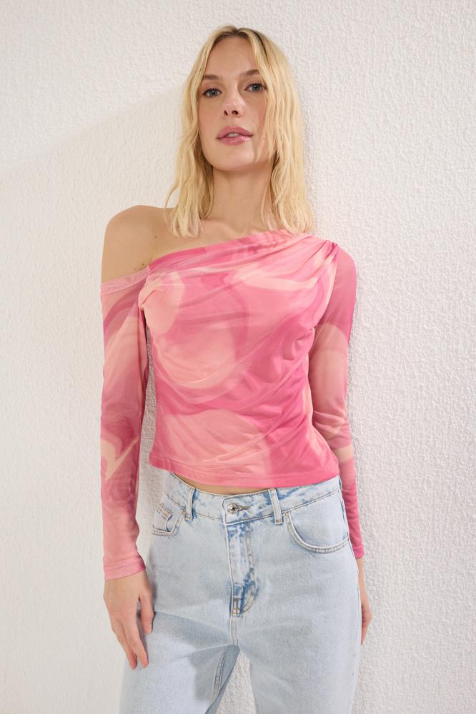 وردي فاتح مجردة تول اصطف طية صدر السترة غير المتكافئة بلوزة TWOAW24BZ00051